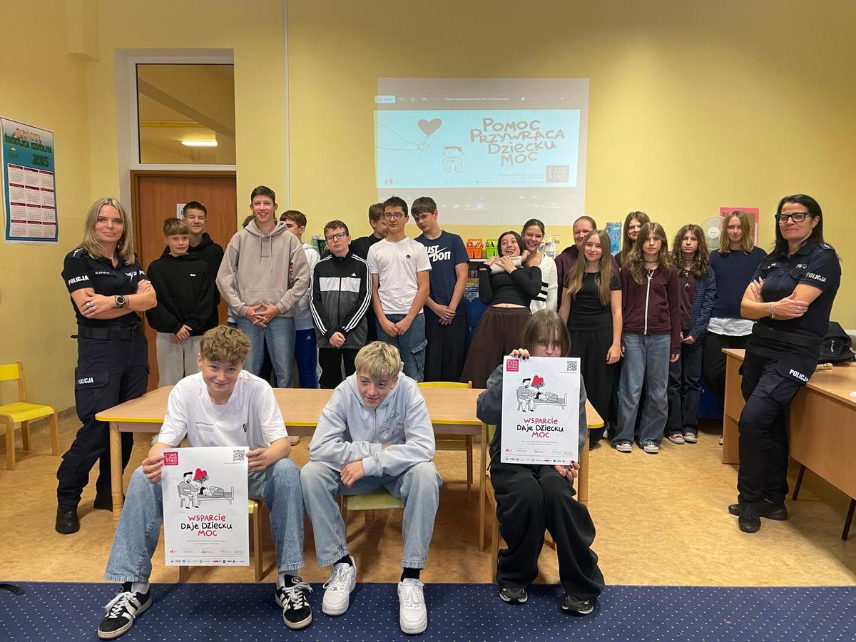 Podczas spotkań, policjantki Wydziału Prewencji asp. Magdalena Stasiak oraz asp. Magdalena Baran, omawiały temat przemocy wobec dzieci, jak również poruszały tematykę związaną z cyberzagrożeniami. Funkcjonariuszki zwracały szczególną uwagę na problematykę przemocy rówieśniczej, cyberprzemocy oraz przemocy domowej. Młodzież uzyskała informację w jaki sposób powinna reagować w przypadku ujawnienia zachowań przemocowych oraz jak dbać o swoje bezpieczeństwo.