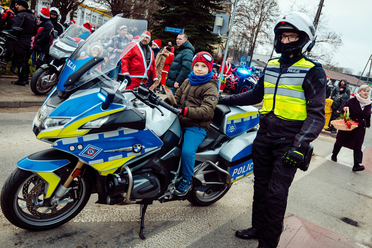 Funkcjonariusze zabezpieczali trasę przejazdu motocyklistów, którzy w tym dniu rozwozili prezenty zebrane dla dzieci z dębickich domów dziecka - "Hanka" i "Jaś" na ulicy Gawrzyłowskiej oraz wychowanków placówki wsparcia dziennego "Zgrana Paka" na ulicy Kraszewskiego w Dębicy.